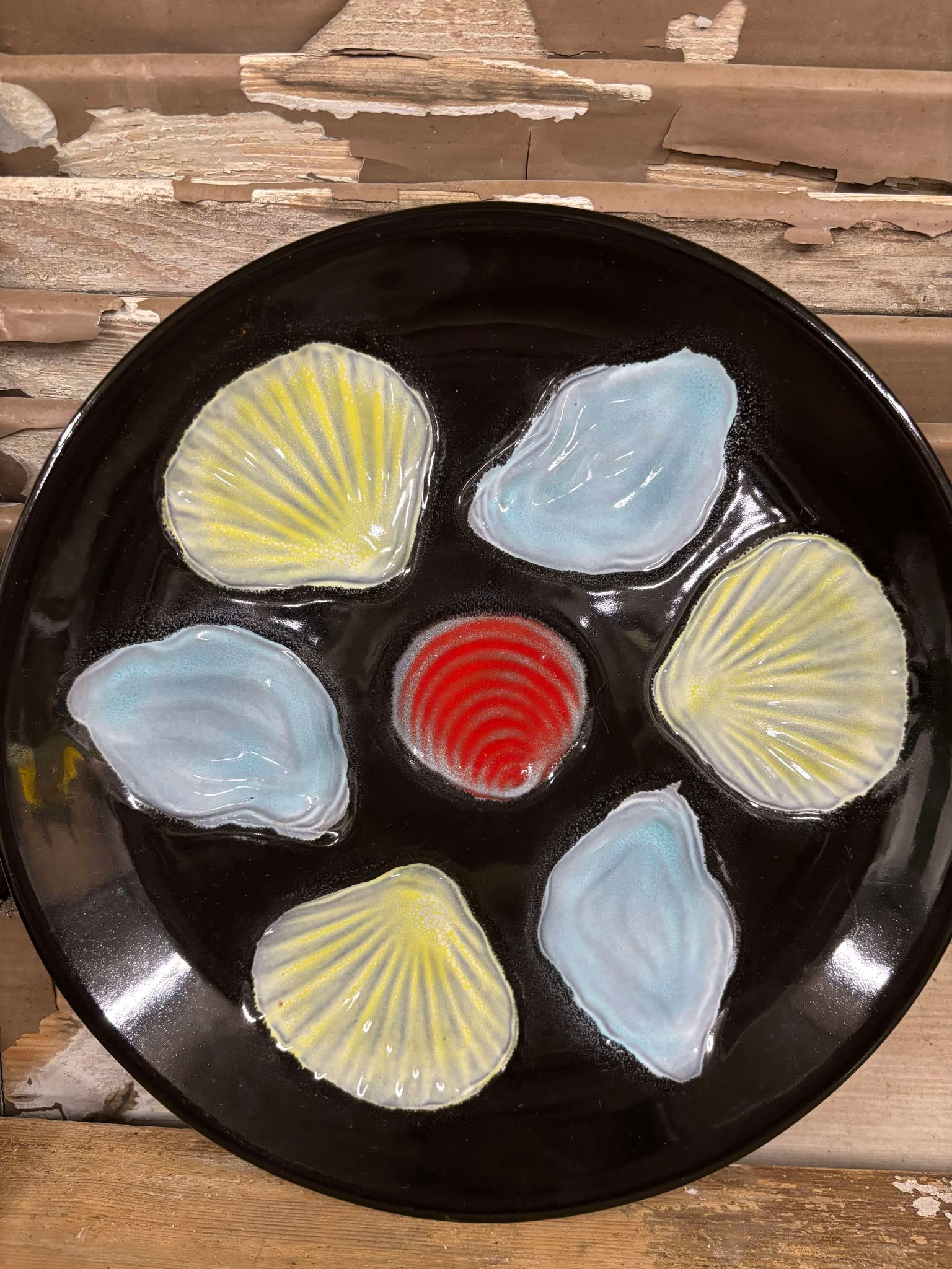 Smuk fransk østers/musling tallerken fra 50erne  VALLAURIS stilen