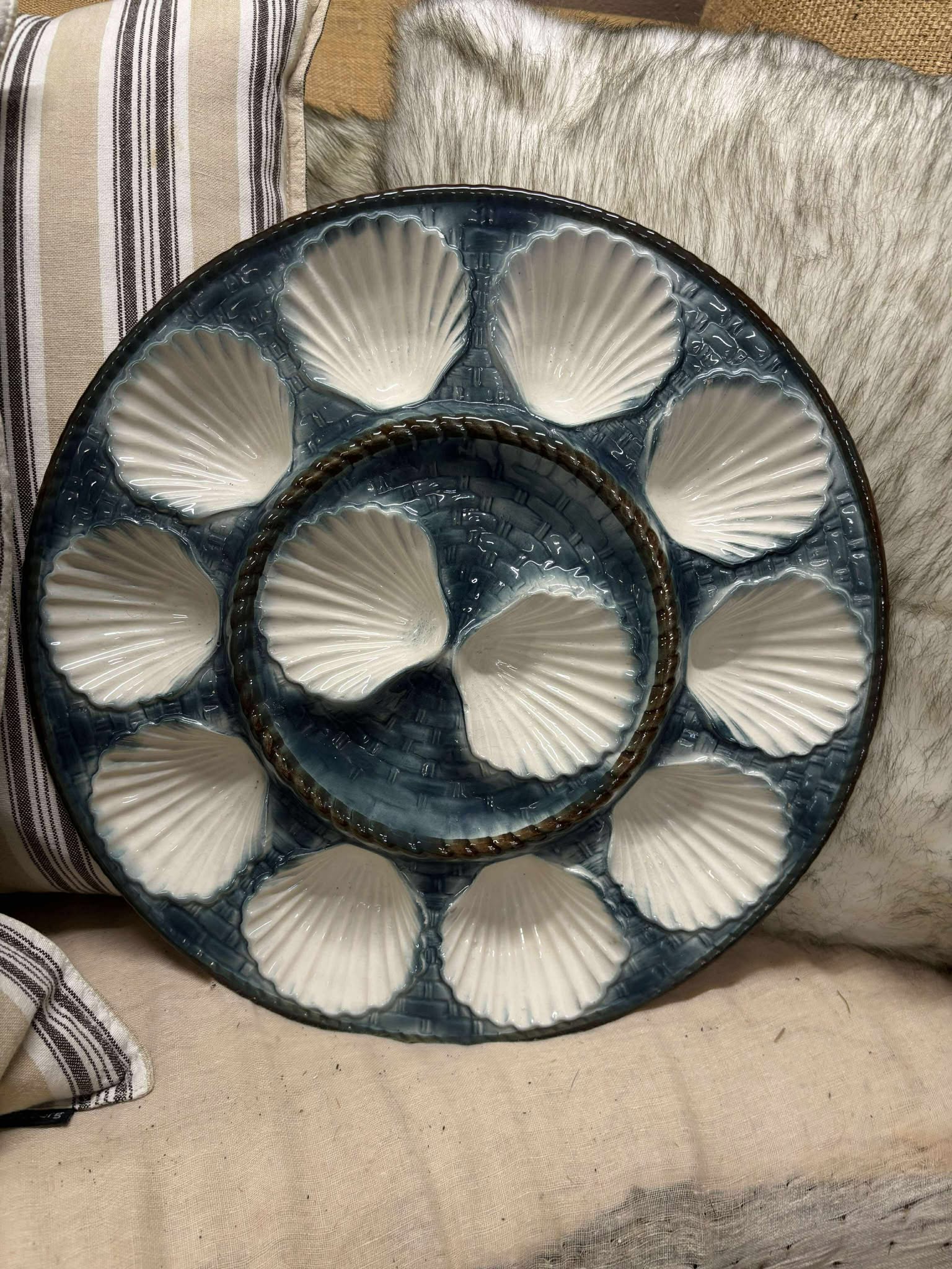 Smuk fransk østersfad med plads til et dusin østers
