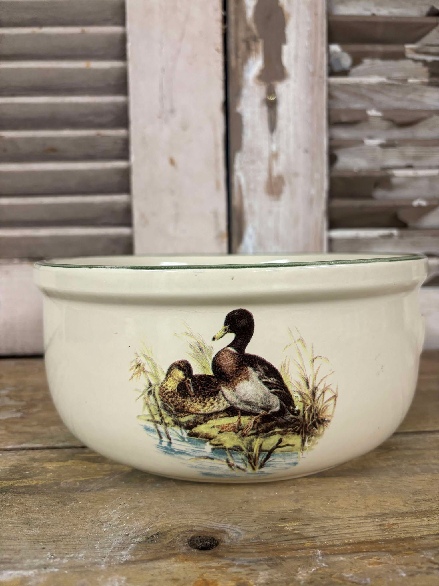 Smuk fransk skål i stentøj med motiver af ænder på